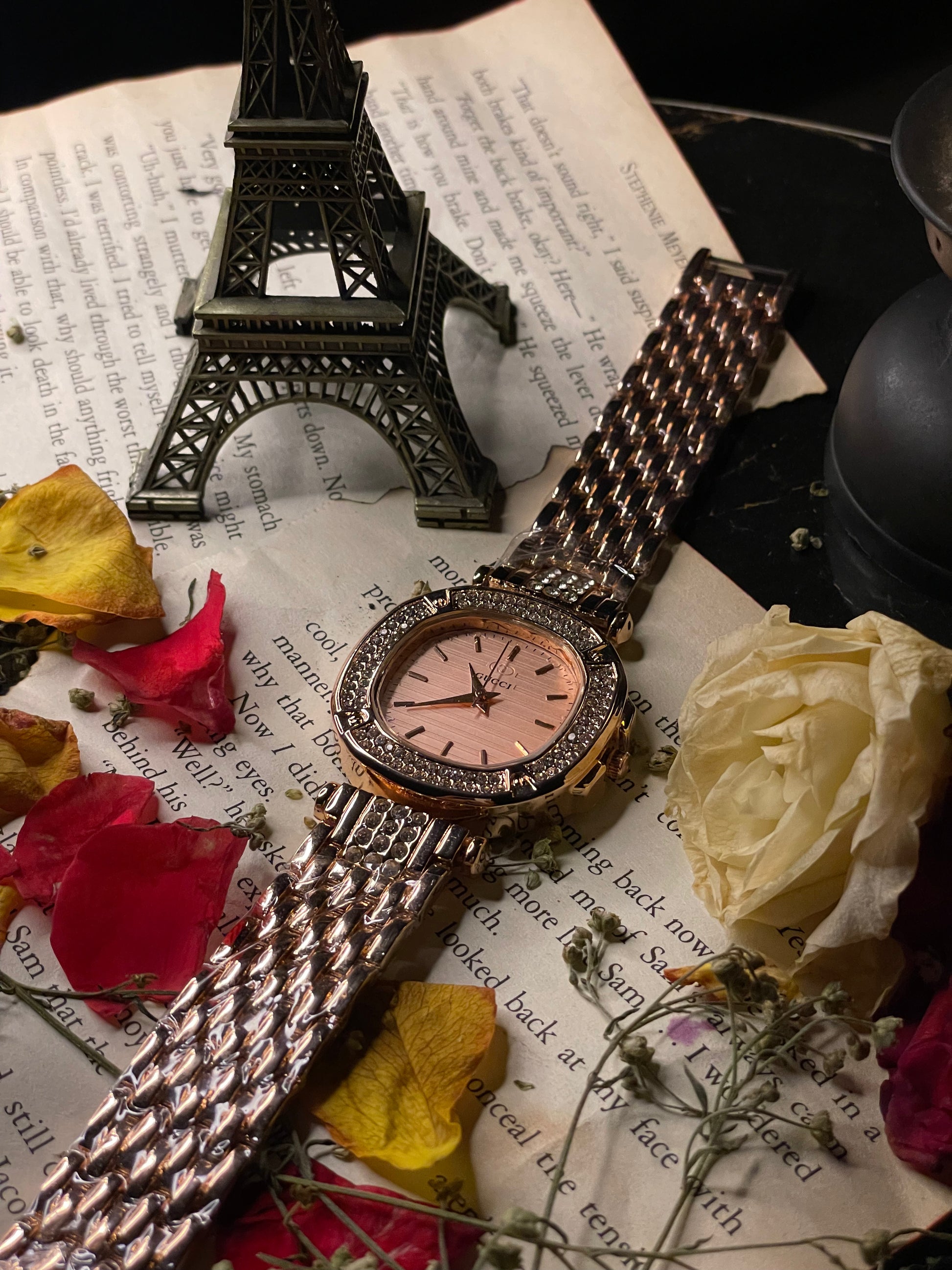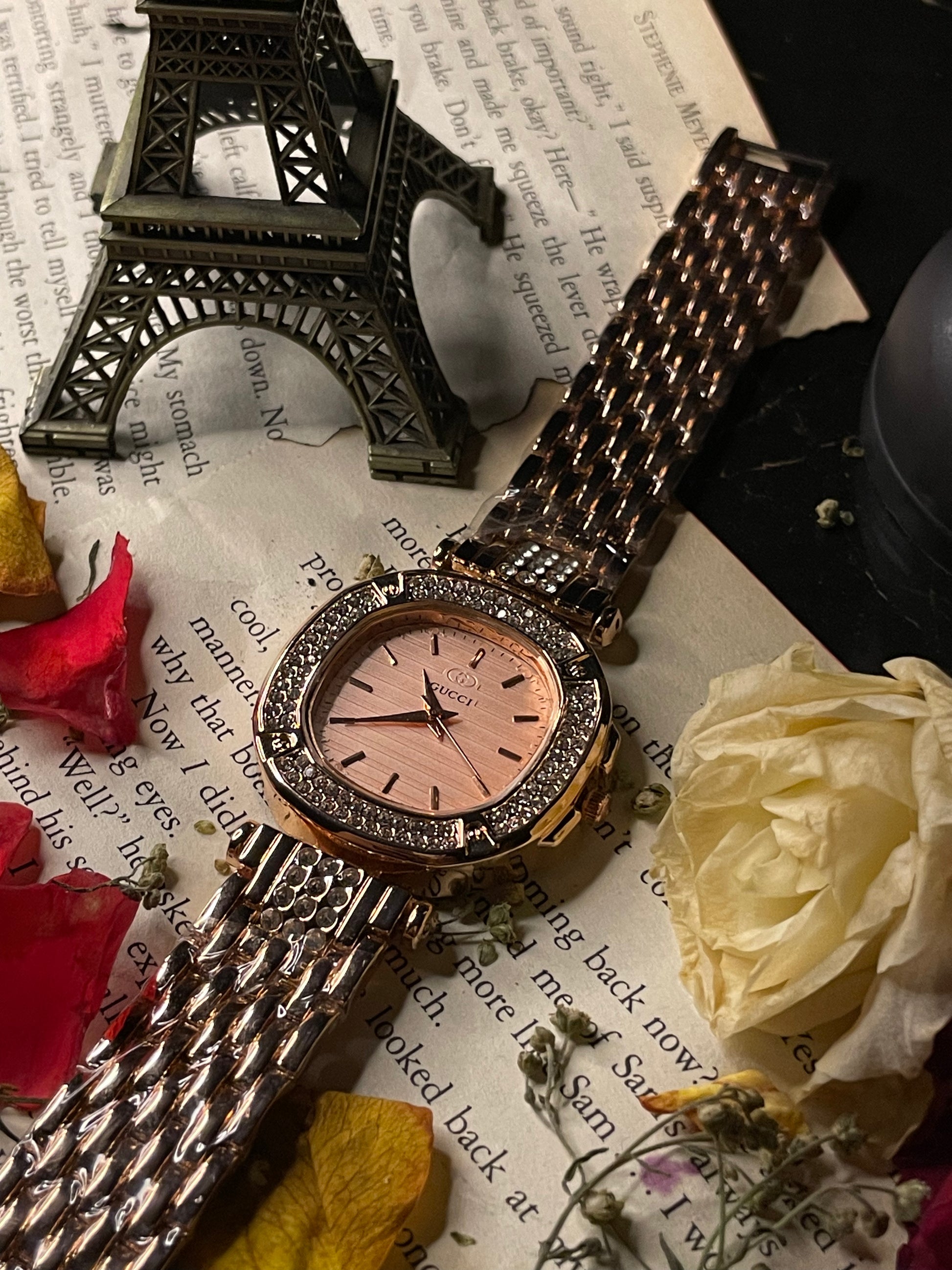 Whether paired with formal attire or worn as a statement piece, this Gucci rose gold diamond watch adds sparkle and sophistication to every moment. A perfect blend of fashion and function — and a timeless gift.