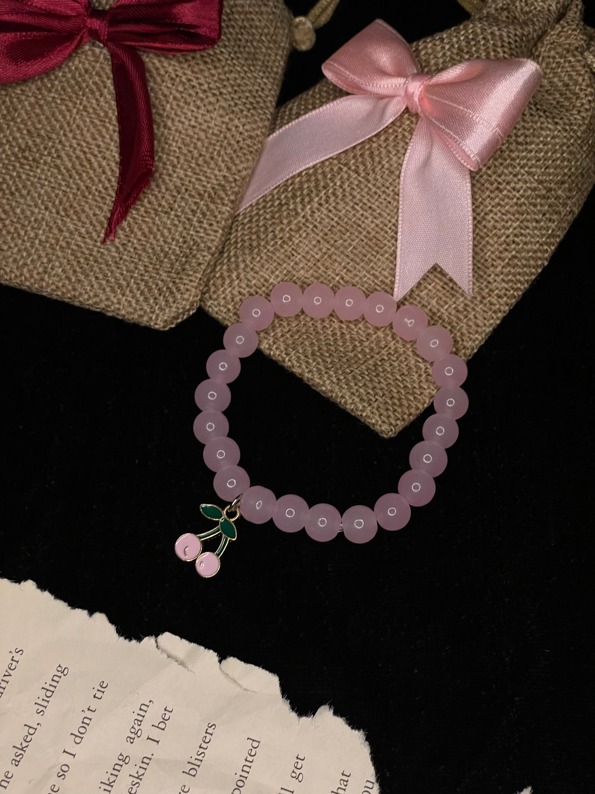 Light Pink Beeds Bracelet With Cherry Charm