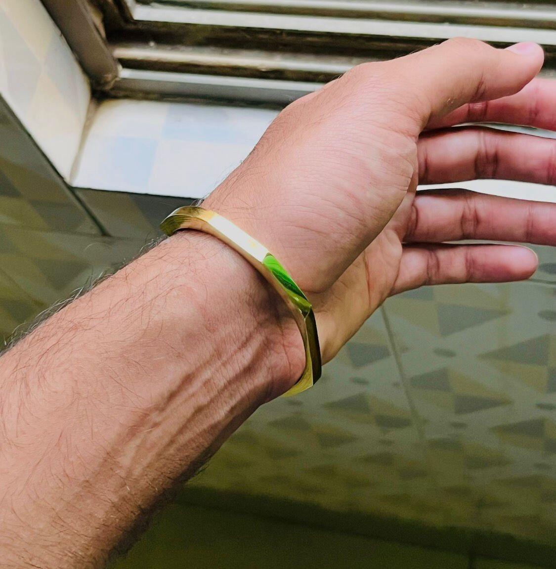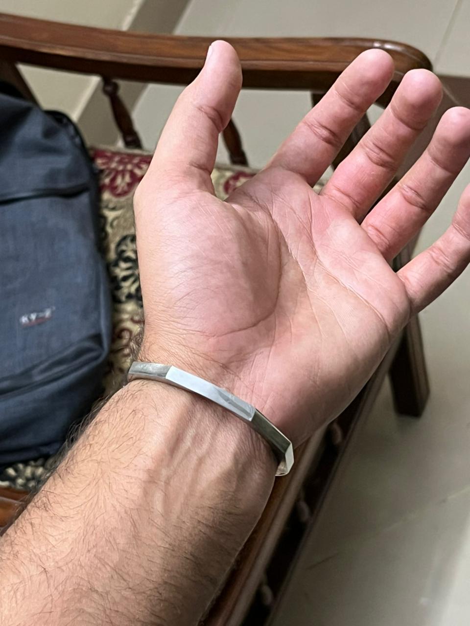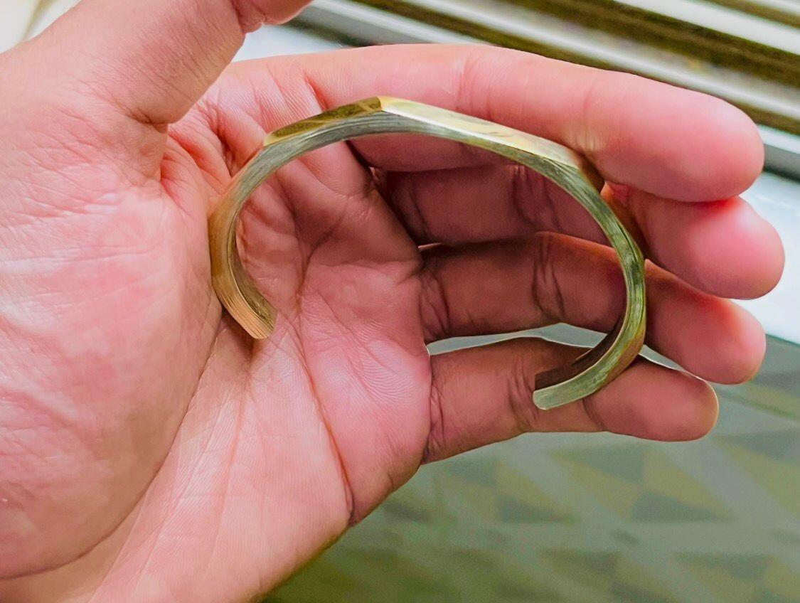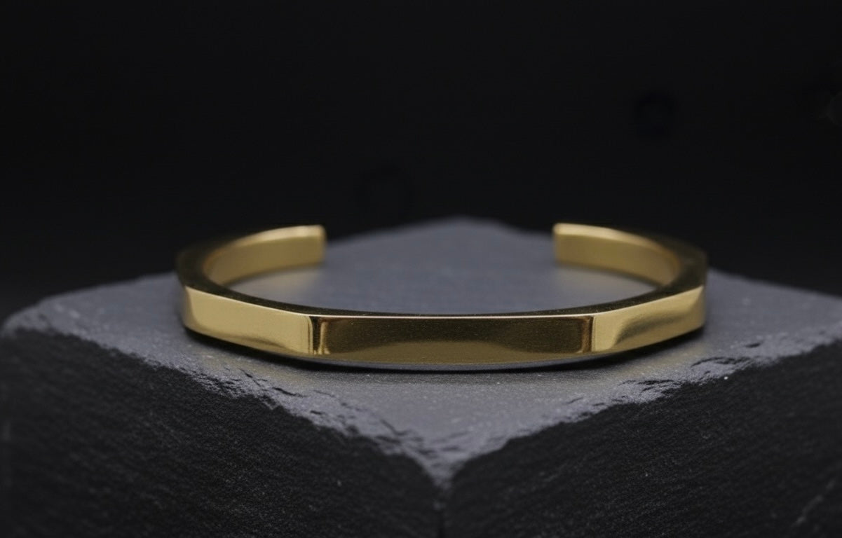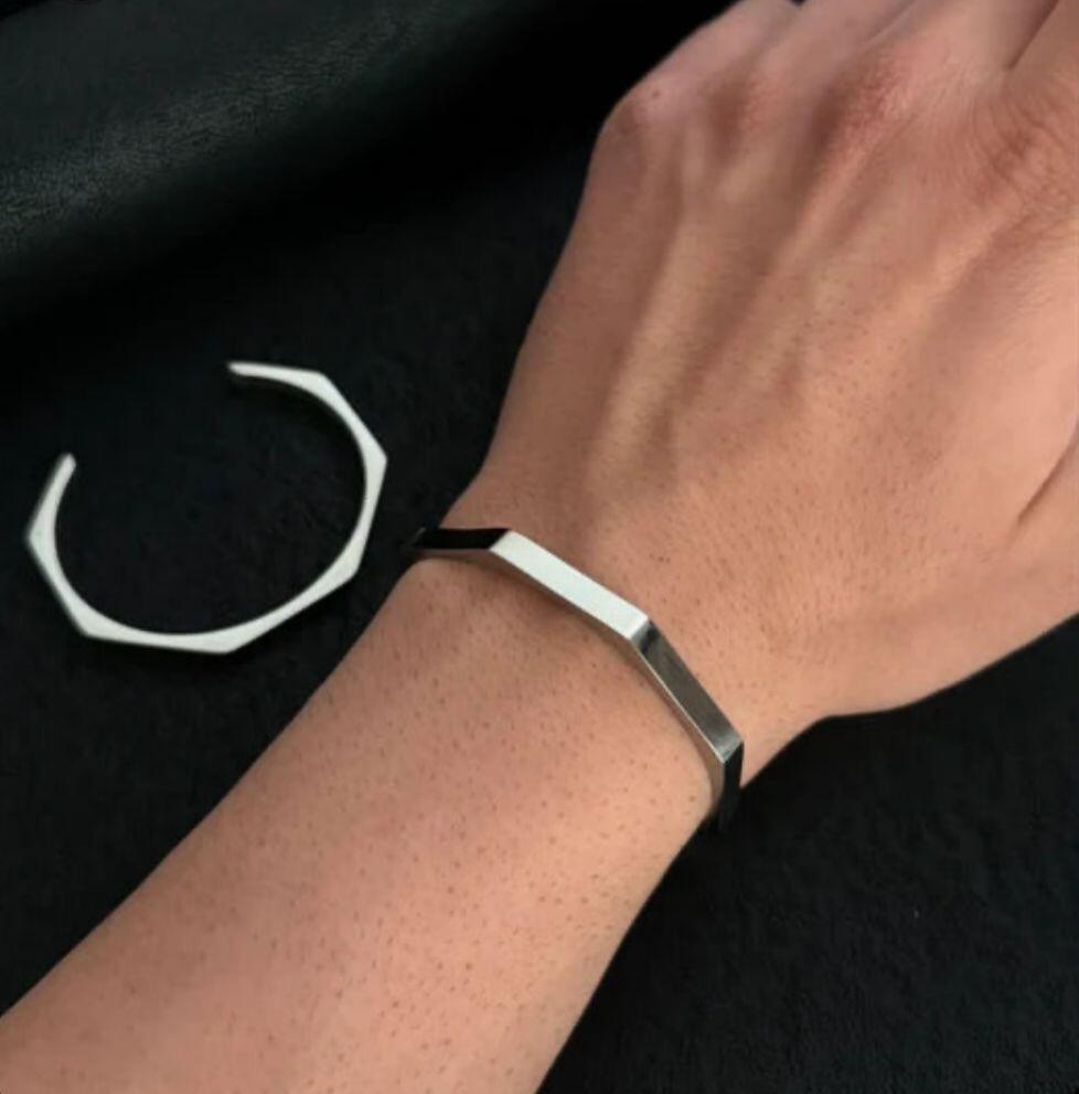 - Design: Open cuff with hexagonal edges